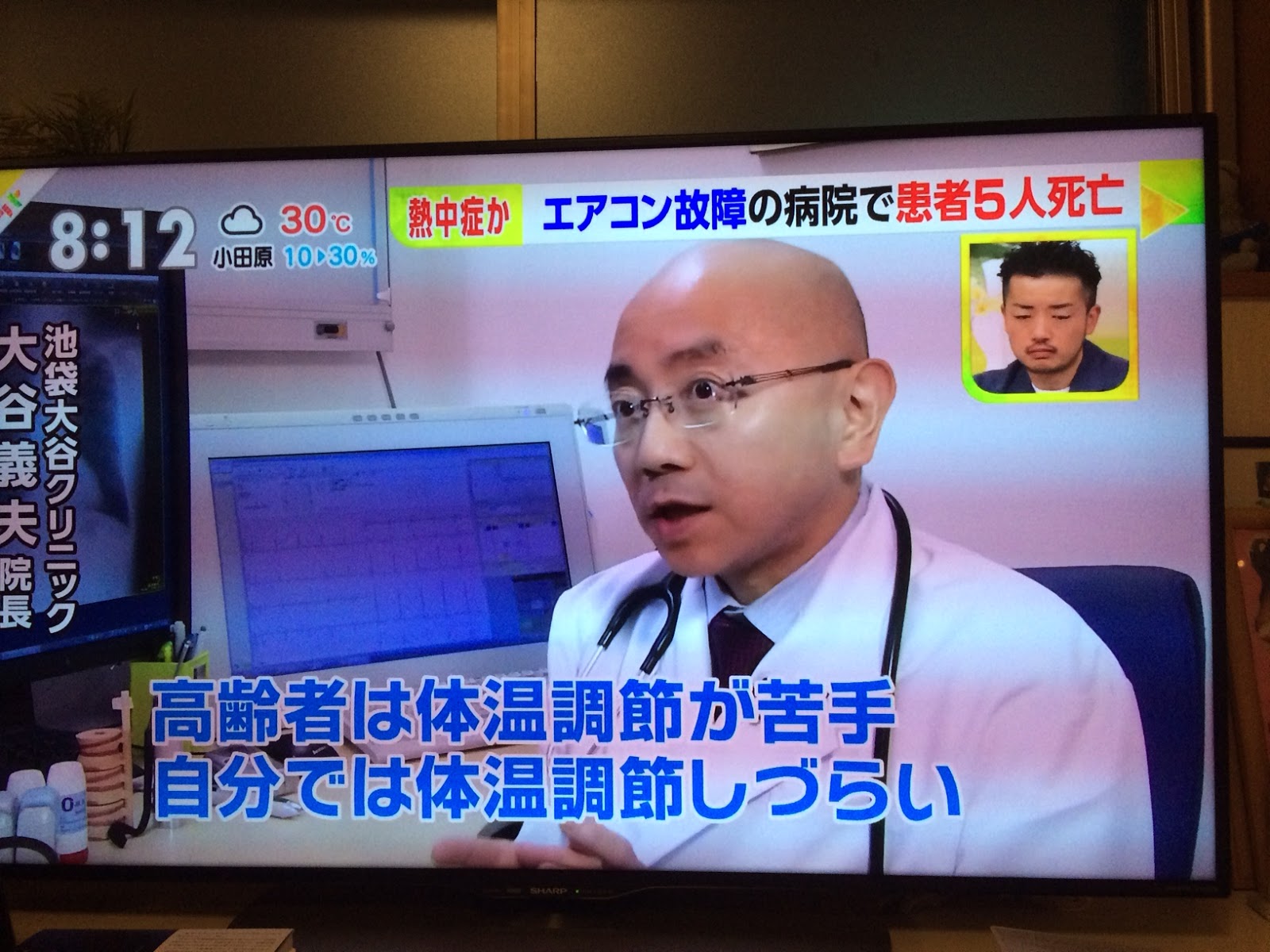 Dr 大谷の院長日記 エアコン故障で熱中症死亡の可能性 Tbsビビット Nスタ あさチャン ニュース23 日本tvスッキリ