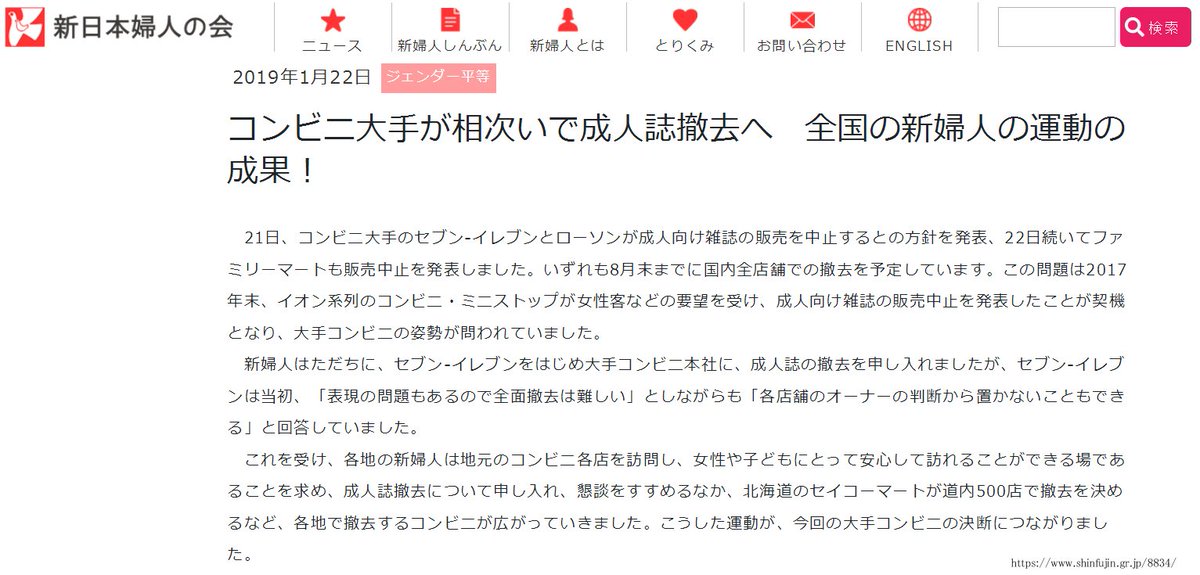 共産党系の女性団体が コンビニエロ本販売中止 は自分達の手柄だと主張 Buzzfeedはフェイクニュースを垂れ流す Togetter