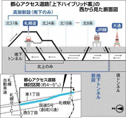 札幌中心部 札樽道 札幌北ic間の 札幌都心アクセス道路 は地下トンネル構造に 方針案とりまとめ トラベル Watch