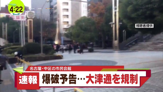 名古屋市民会館の爆破予告の犯人を特定か 名古屋市中区金山の 日本特殊陶業市民会館 に爆破予告がされ 大津通を規制