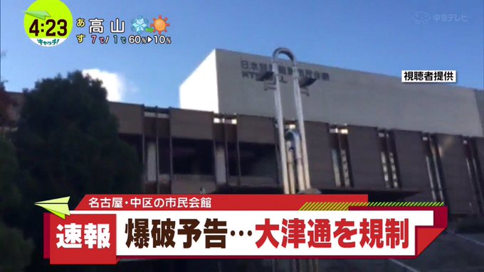 名古屋市中区金山の市民会館に爆破予告 大勢の警察官ら集まり騒然 ニュース速報japan