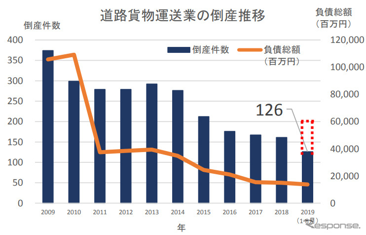 2019年の道路貨物運送業者倒産件数 6年ぶり増加の可能性大 帝国データバンク調べ レスポンス Response Jp