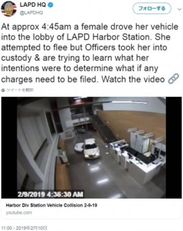 幼児を乗せたまま警察署内に車ごと突入した女 米 動画あり 2019年2月21日 エキサイトニュース