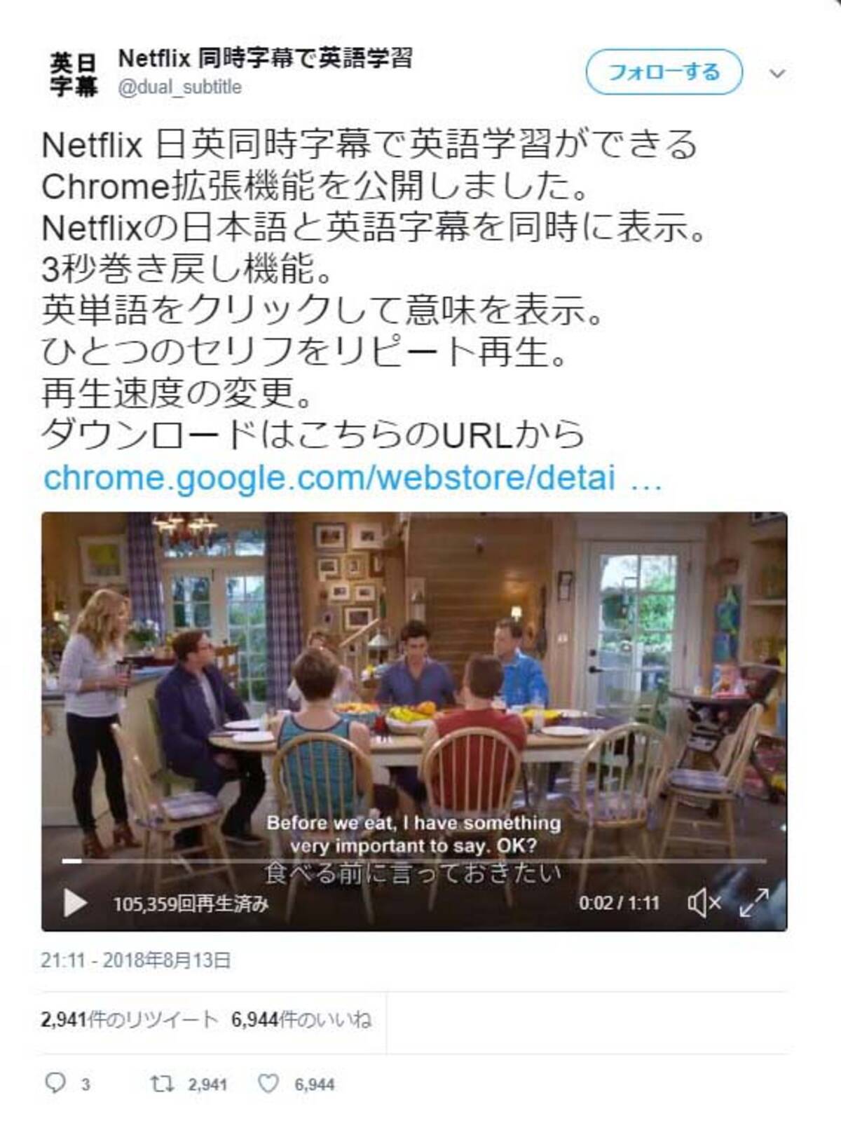 好きな映画やドラマが日英同時字幕で楽しめる Netflix で英語学習ができるchrome拡張機能を公開 2018年8月21日 エキサイト ニュース