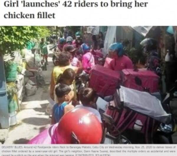 7歳少女が誤ってフードデリバリーを大量注文 42人分のチキンを持ったバイク便の群れが家に押しかける フィリピン 動画あり 2020年12月2日 エキサイトニュース