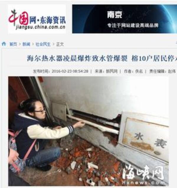 熱水機爆発 飛び散る熱水 立ち込める蒸気 壁の中では水道管が誘爆 中国 2016年2月26日 エキサイトニュース