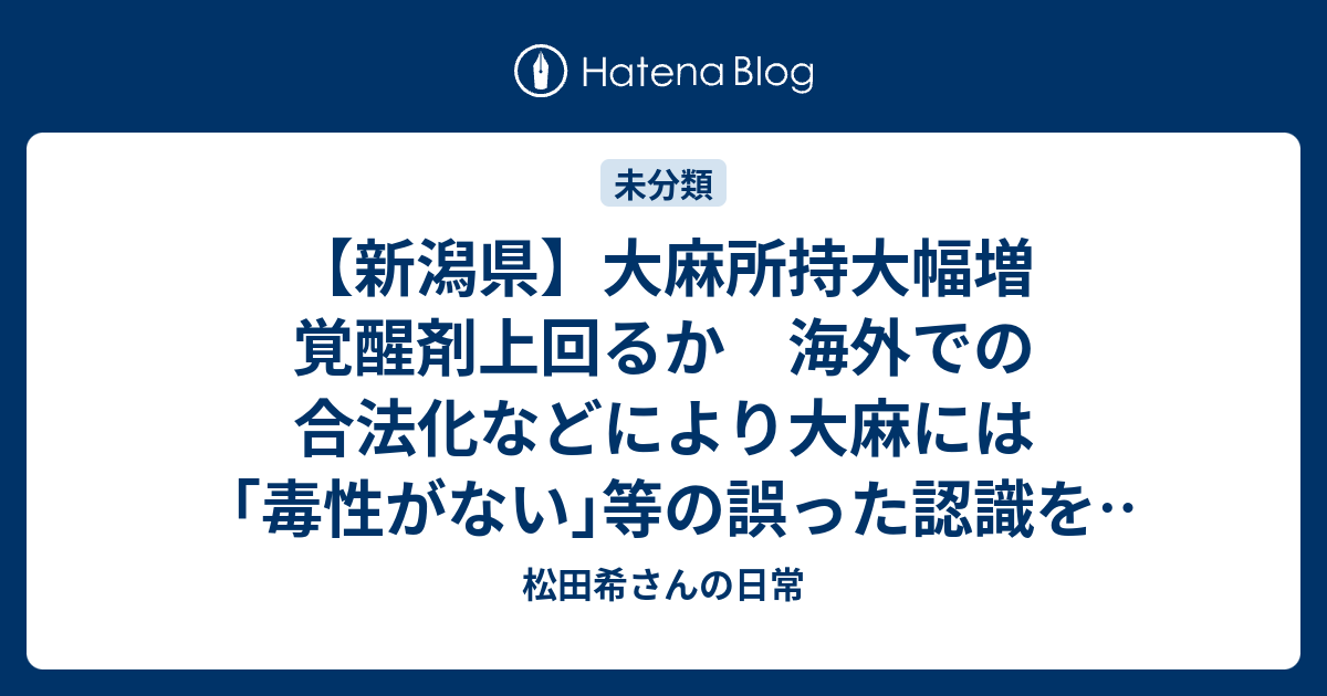 新潟県 大麻所持大幅増 覚醒剤上回るか 海外での合法化などにより大麻には 毒性がない 等の誤った認識を持つケース多いよん と警察 松田希さんの日常