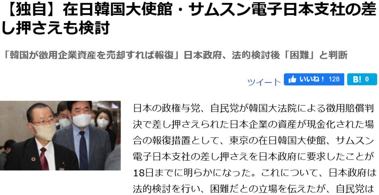 韓国紙が 自民党が韓国大使館 サムスン電子の差し押さえを計画 と報道 この荒唐無稽な話ホントなの 日韓経済戦争 2020年10月20日 エキサイトニュース