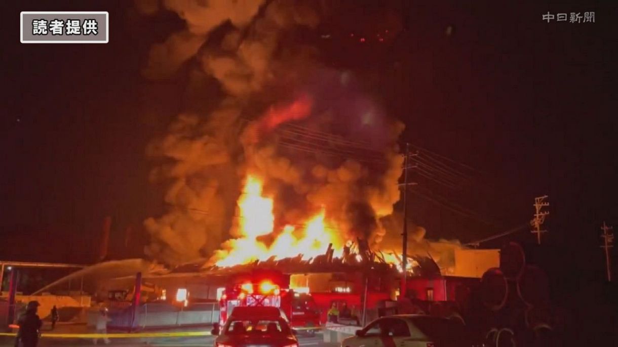 廃材など燃える火事 国道1号線も通行止めに 三重 鈴鹿市 中京テレビnews