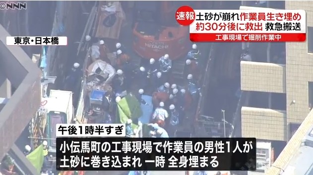 工事現場で作業員1人が一時土砂に埋まる 東京 日本橋 Nhk