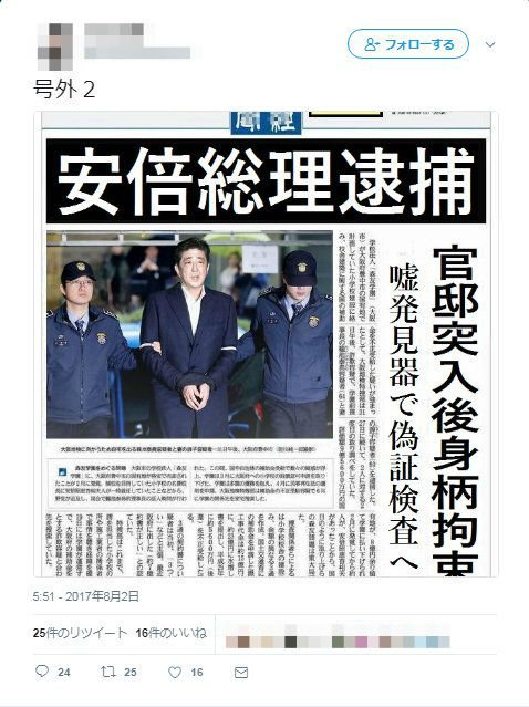安倍総理逮捕 偽号外 コラ素材は韓国製であることが判明 Togetter