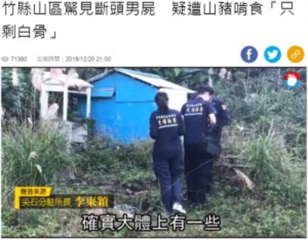 動物に食べられ白骨化 頭部の離れた男性遺体発見 台湾 2018年12月22日 エキサイトニュース