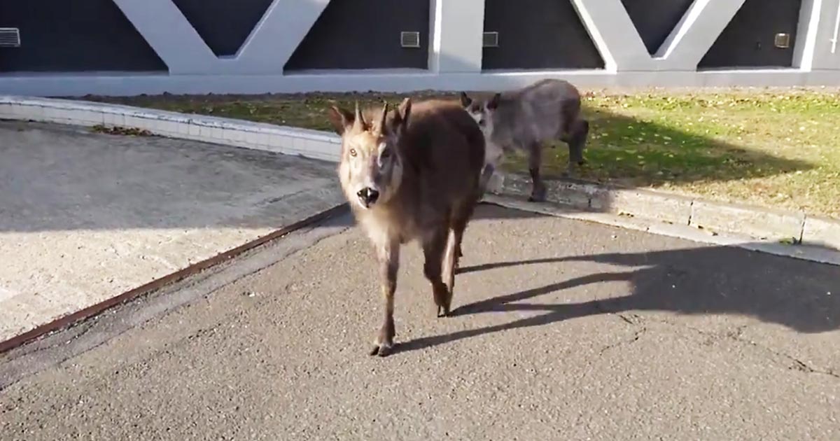 自衛隊員が特別天然記念物の ニホンカモシカ の親子が警戒心もなく のんびりと隊員に近づいてくる動画を撮影し話題に ニコニコニュース