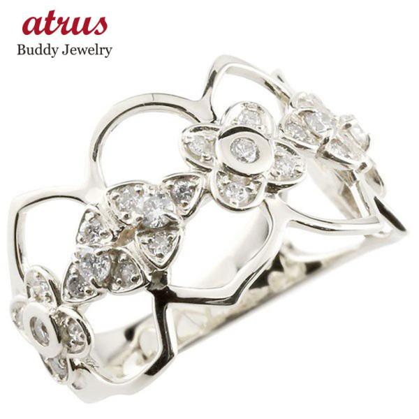エンゲージリング フラワー ダイヤ ダイヤモンド リング 透かし フラワー ホワイトゴールドk18 透かし ピンキーリング 18金 指輪 指輪 ダイヤ 送料無料 170501ko203we ジュエリー工房アトラス