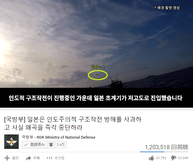 レーダー照射 韓国国防省の反論動画が120万再生突破 3万4000コメントに6万の低評価と注目集まる ニコニコニュース