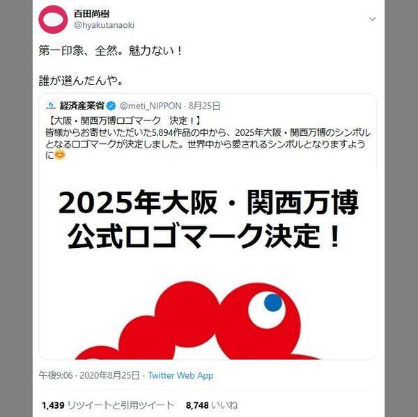 2025年大阪万博のロゴマークに百田尚樹さん 第一印象 全然 魅力ない 誰が選んだんや と苦言ツイートも二次創作は盛り上がる 2020年8月27日 エキサイトニュース
