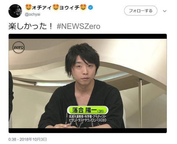 News Zero 生放送に落合陽一出演で視聴者から賛否 やはり 人は見た目が9割 なのか 2018年10月3日 エキサイトニュース