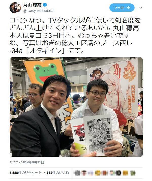 丸山穂高議員 コミケなう 冬コミはどなたか丸山本も出してくれれば 本人買いに行きます 2019年8月13日 エキサイトニュース