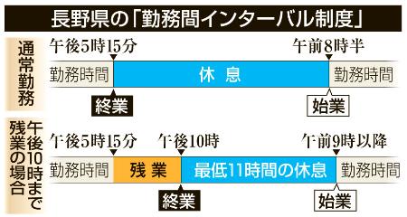 長野県 勤務間インターバル導入 10月2日から最低11時間で