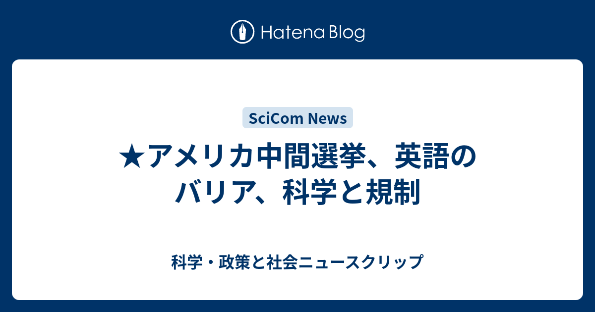 アメリカ中間選挙 英語のバリア 科学と規制 科学 政策と社会ニュースクリップ