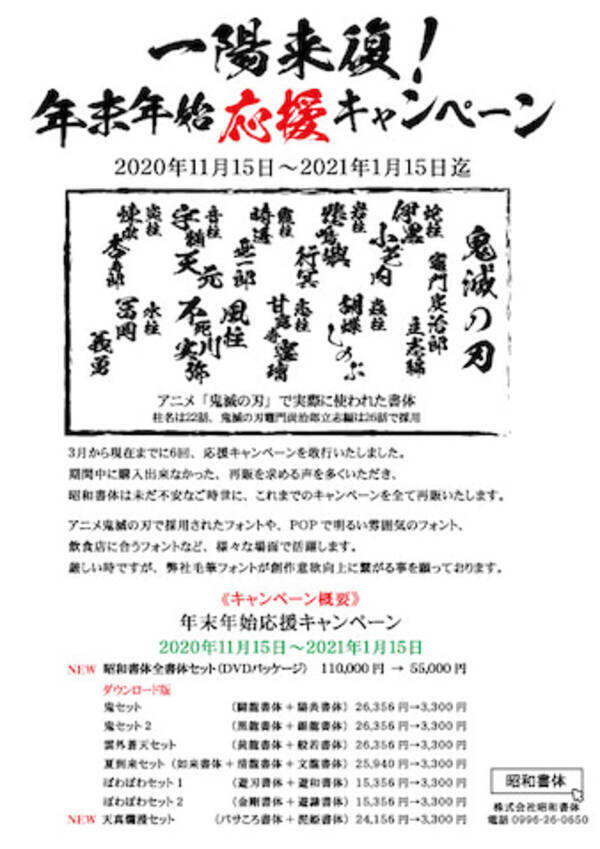 アニメ 鬼滅の刃 で採用されたフォントが年末年始応援キャンペーンを開始 2020年11月25日 エキサイトニュース