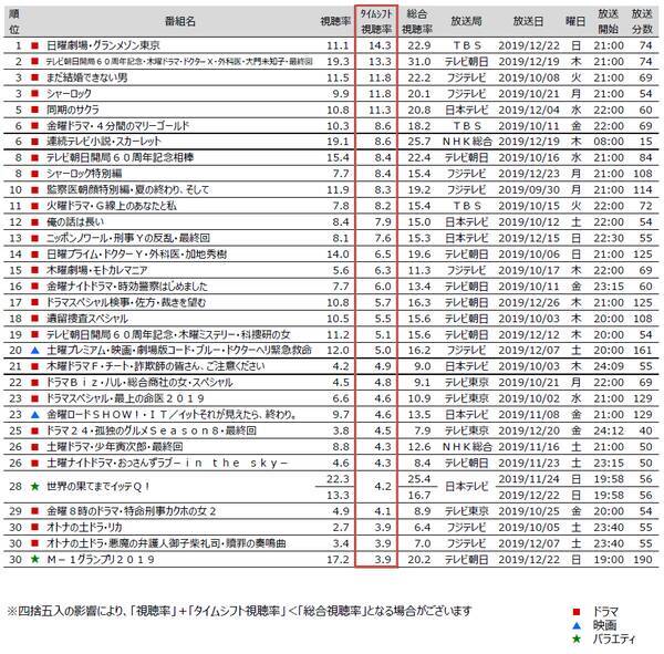 関東地区タイムシフト視聴動向 2019年10月クール 多く見られた番組は 2020年1月22日 エキサイトニュース