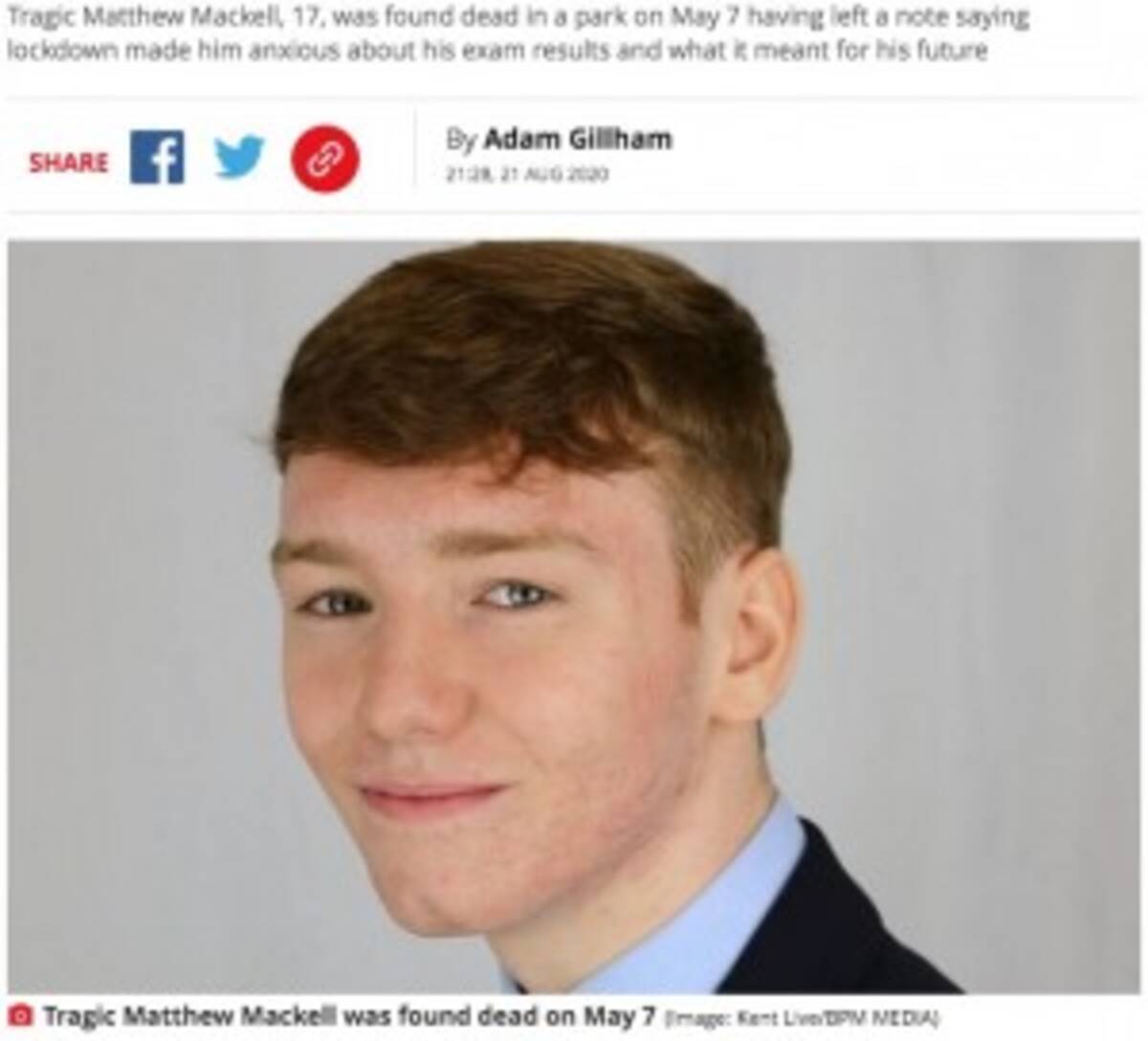 学業のプレッシャーを苦に自殺した17歳少年 後に成績優秀の通知が届く 英 2020年8月26日 エキサイトニュース