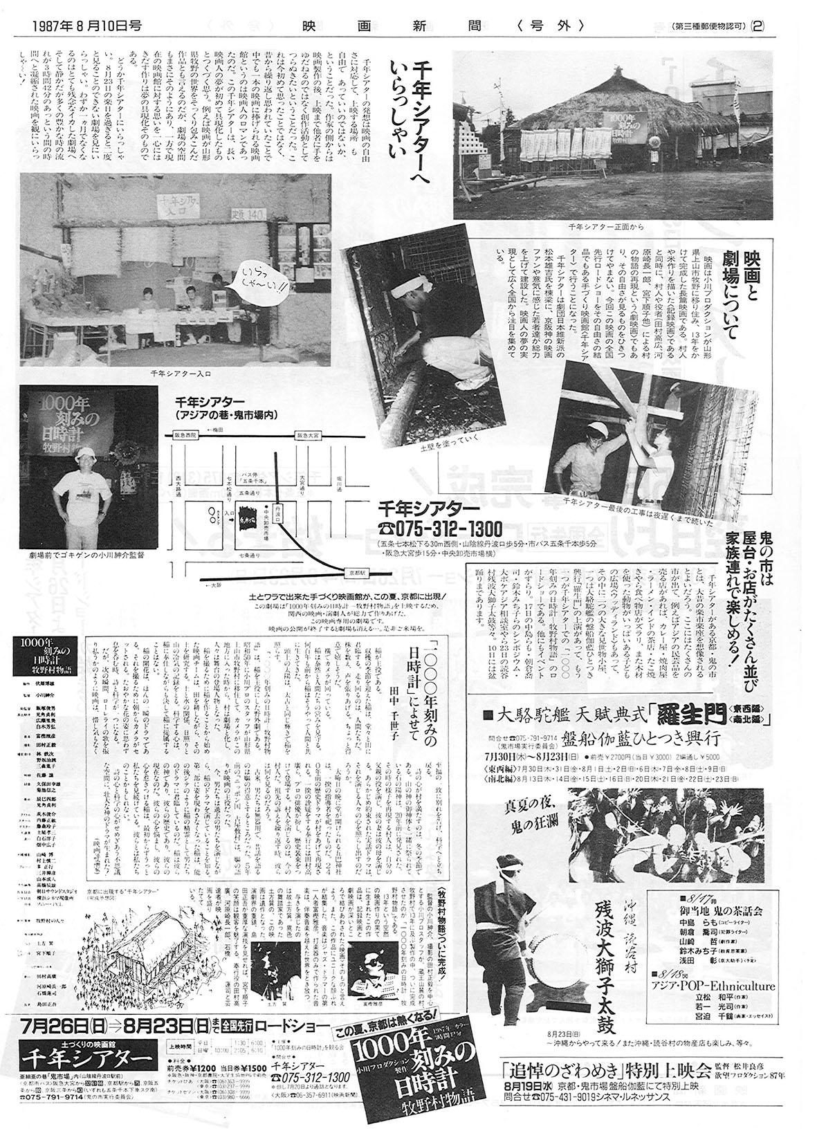 シネ ヌーヴォ On Twitter 続き 千年シアターの建設は松本さんを棟梁に 維新派の面々や若者たちが参加 維新派お得意の丸太で骨格を作り 外壁は土壁 淀川から大量の葦で屋根を覆い1ヵ月の工事で姿を表した 完成間もないころ小川監督も駆けつけ ついに完成
