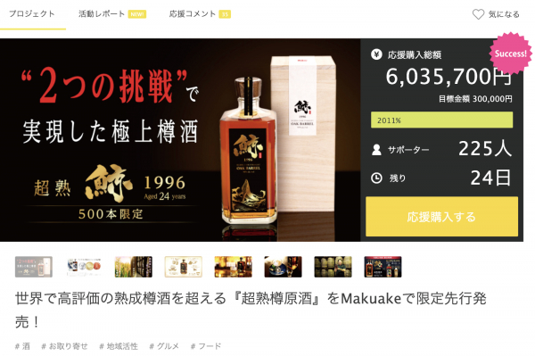 クラウドファンディング開始から5日で目標金額2 000 を達成 残数僅かの希少な樽原酒 鯨 1996 がmakuakeにて先行限定発売 久米仙酒造株式会社 プレスリリース配信代行サービス ドリームニュース