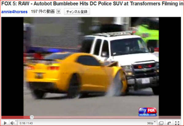 トランスフォーマー3 撮影中にトランスフォーマーが交通事故 バンブルビーがパトカーと衝突 2010年10月18日 エキサイトニュース