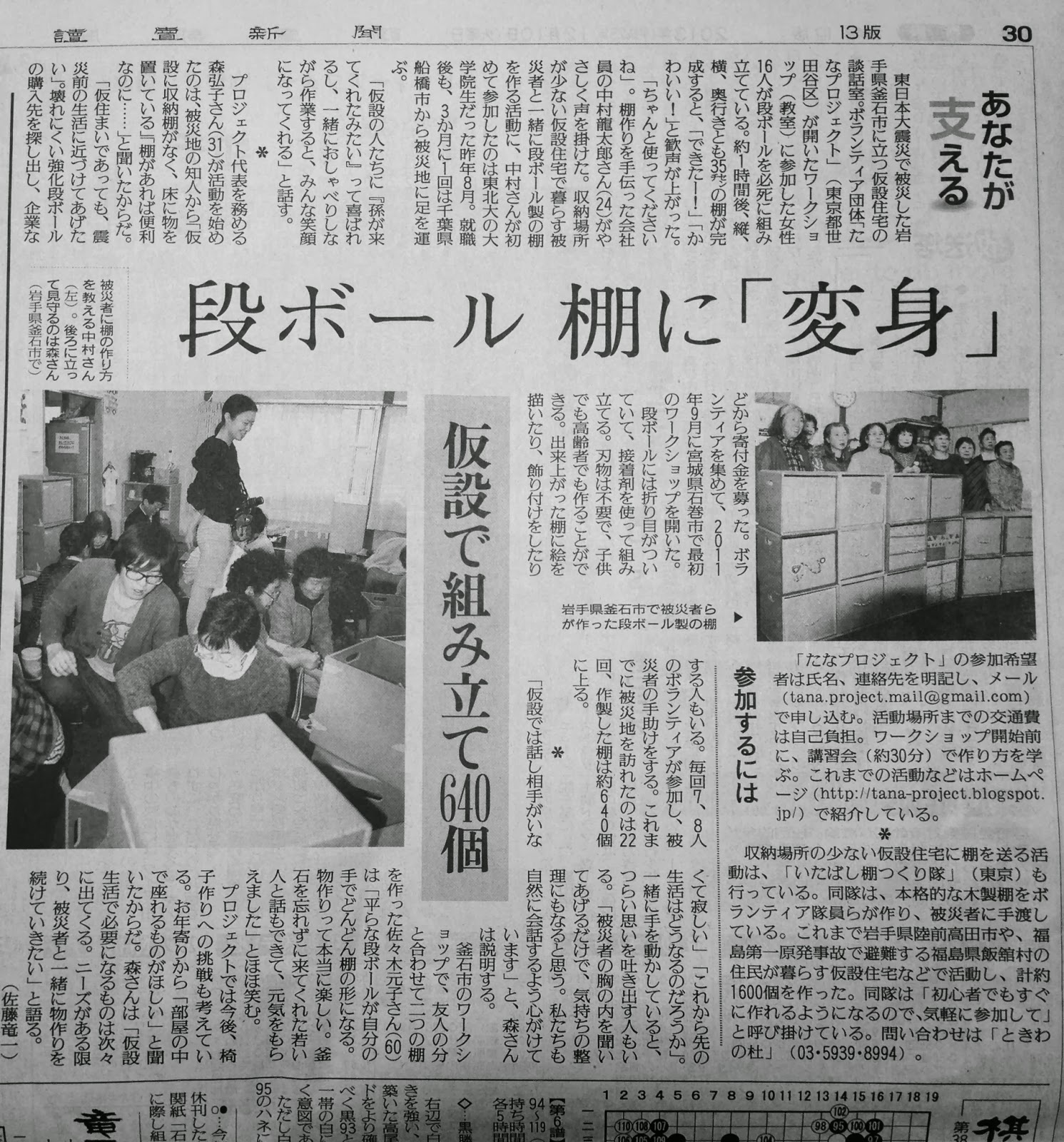 Tanaproject 2013年12月10日 火 朝刊 読売新聞に掲載されました