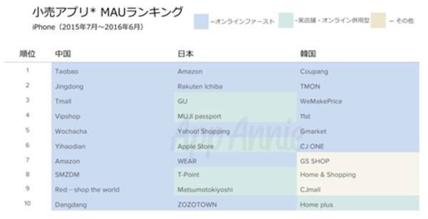 App Annie 小売業界アプリmauランキングを発表 日本では Amazon は首位 楽天市場 Gu などの国産アプリも多数ランクイン 小売アプリにおける利用時間は世界各国で増加中 2016年10月18日 エキサイトニュース