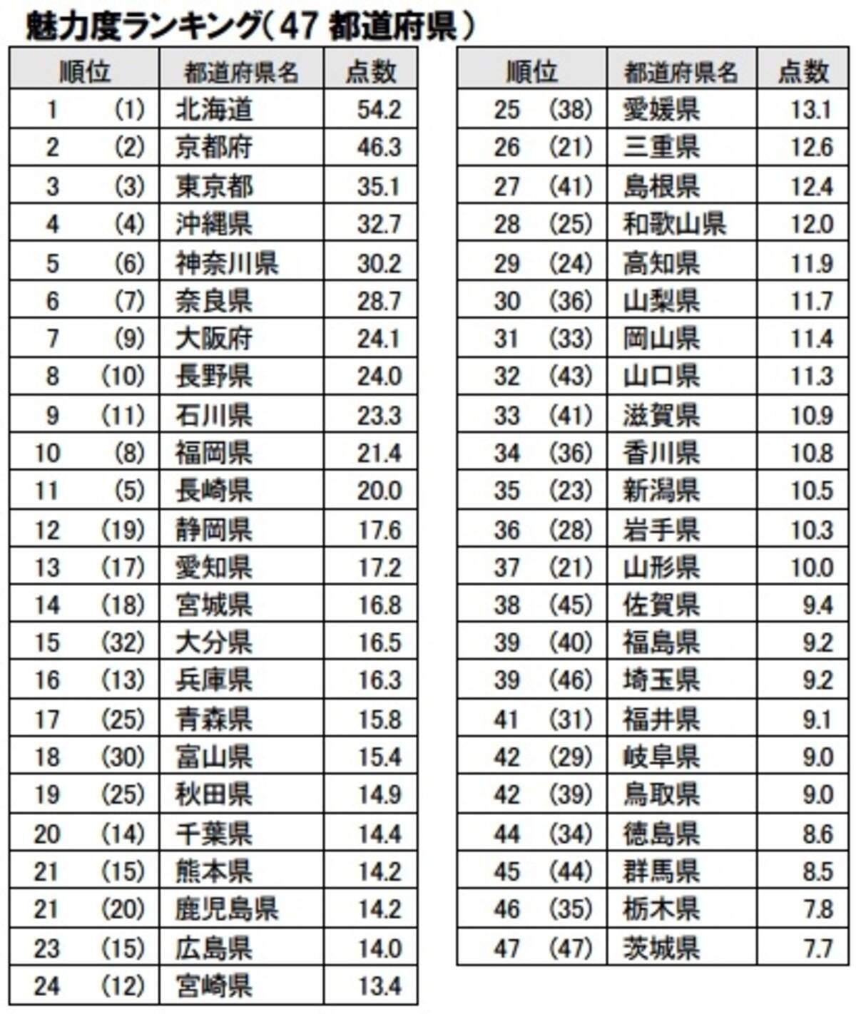 最下位はやはりあの県 都道府県の魅力度ランキング 2016年の1位は北海道 2016年10月19日 エキサイトニュース