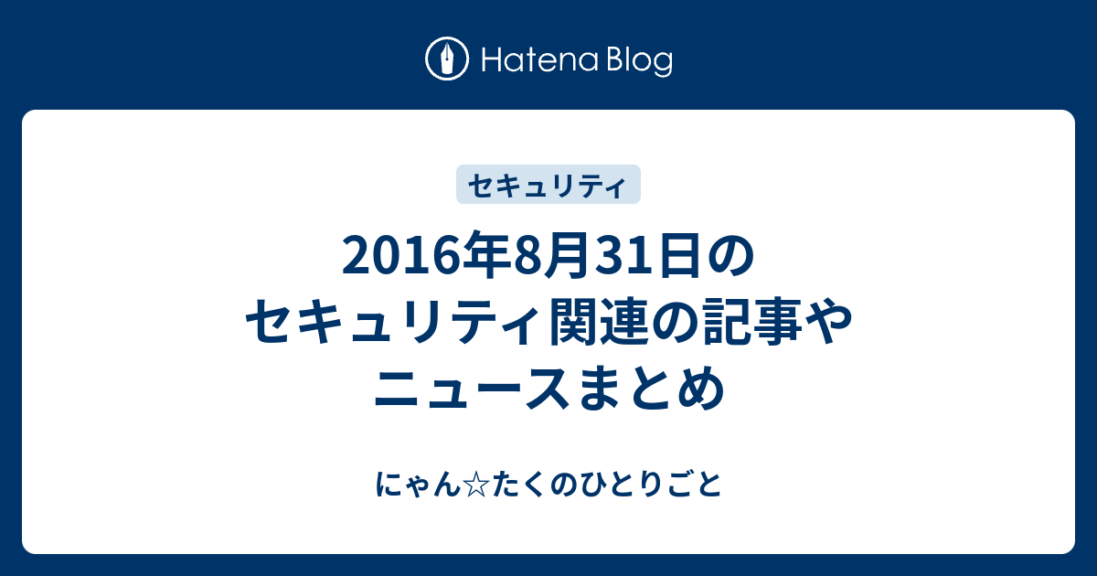 2016年8月31日のセキュリティ関連の記事やニュースまとめ にゃん たくのひとりごと