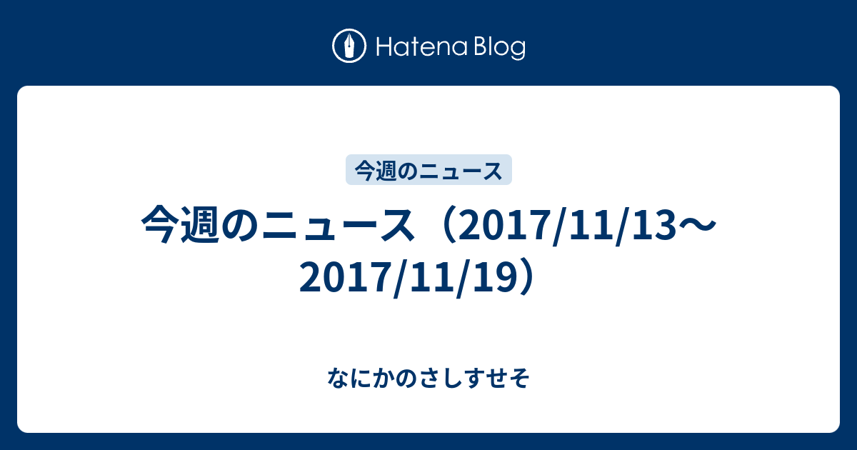 今週のニュース 2017 11 13 2017 11 19 なにかのさしすせそ
