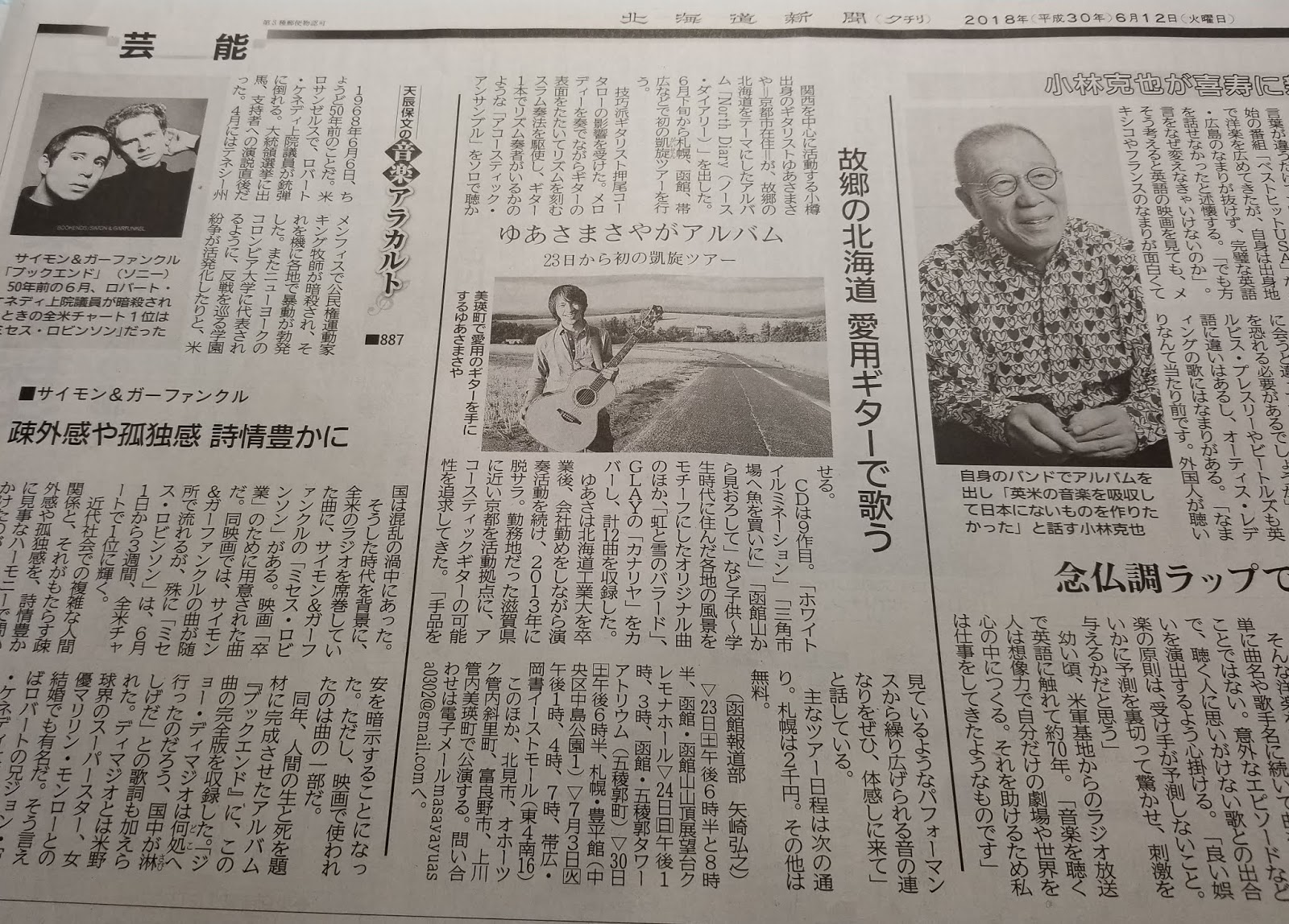 ゆあさまさや Musicofficeblog ニュース 6 12 北海道新聞 夕刊の芸能欄に掲載されました