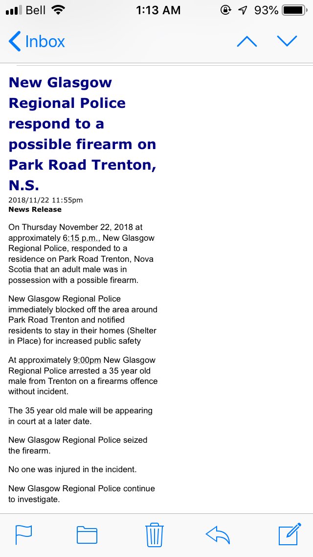 New Glasgow Police On Twitter Ngrp News Release 2018 11 22 11 55pm Trenton N S